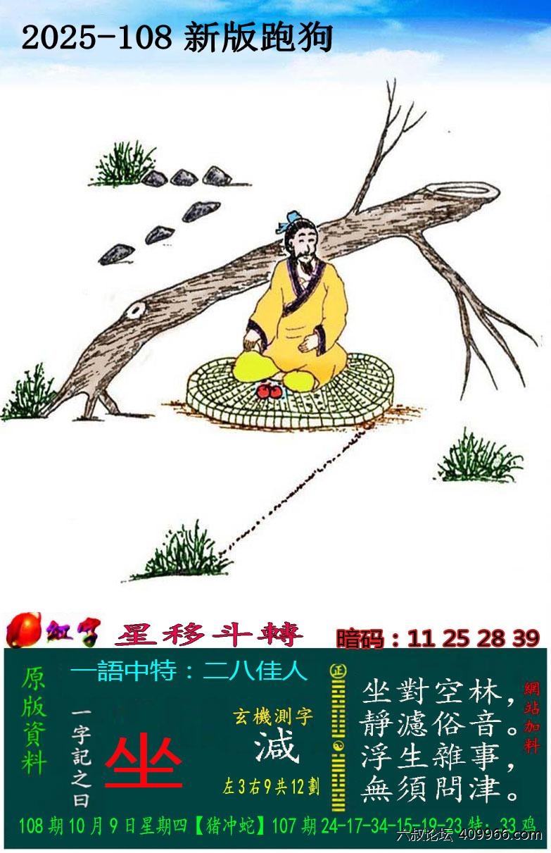 108期新版跑狗一字記之曰:【坐】 玄機測字:《減》 一語中特:二八佳人