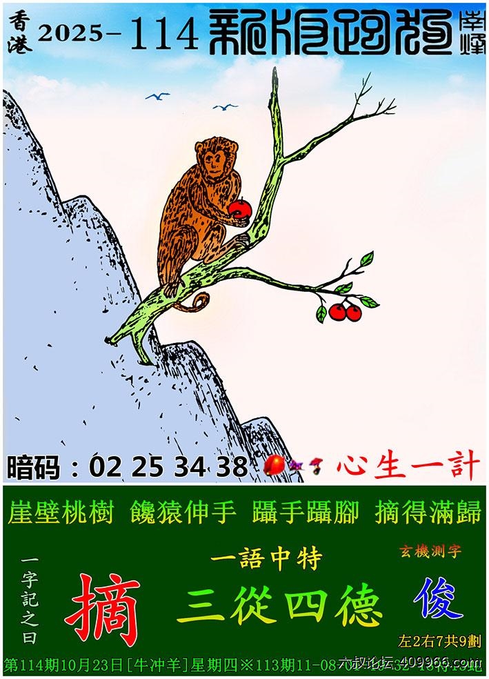 114期新版跑狗一字記之曰:【摘】 玄機測字:《俊》 一語中特:三從四德