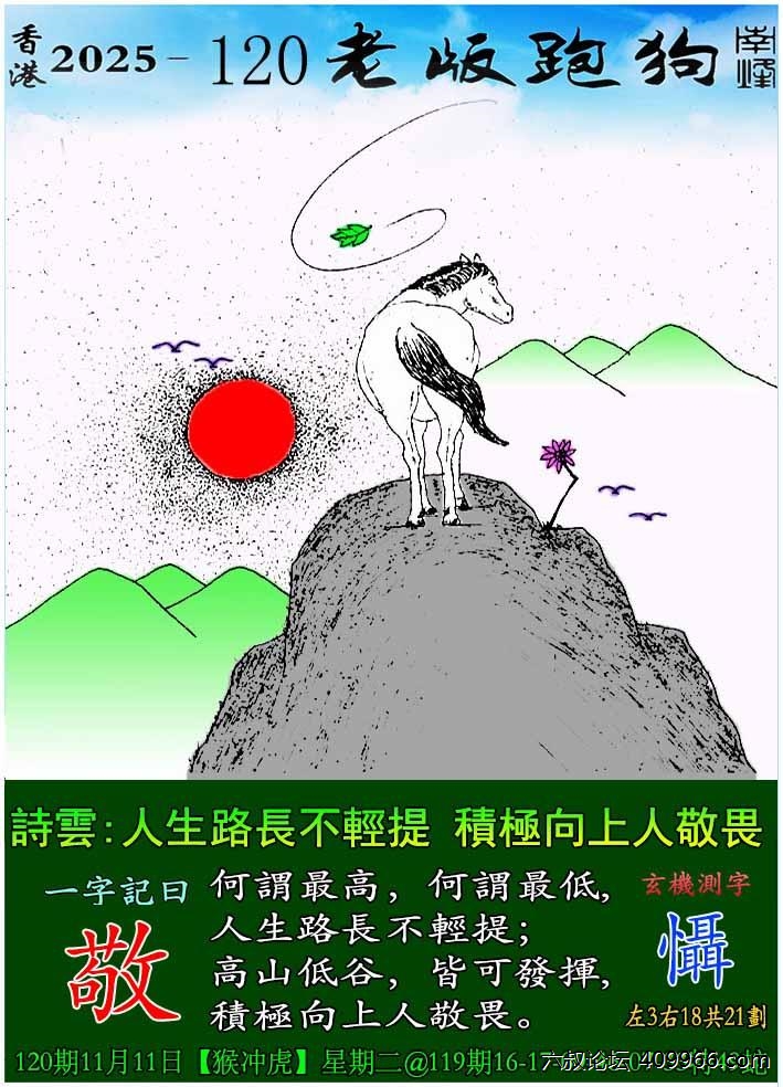 120期老版跑狗一字記之曰:【敬】 玄機測字:《懾》