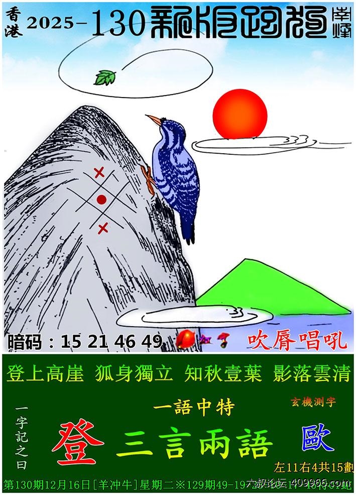 130期新版跑狗一字記之曰:【登】 玄機測字:《歐》 一語中特:三言兩語