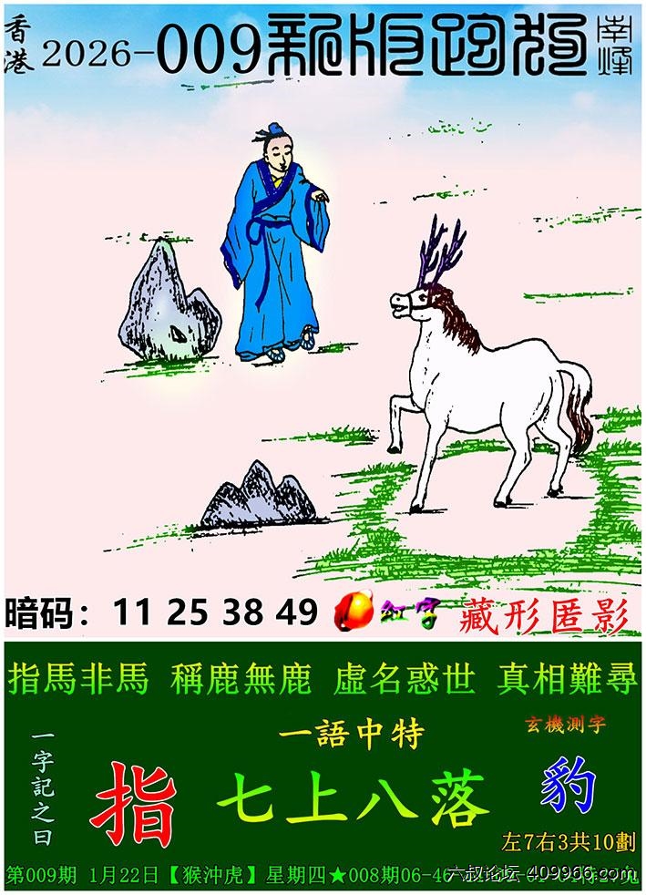 009期新版跑狗一字記之曰:【指】 玄機測字:《豹》 一語中特:七上八落