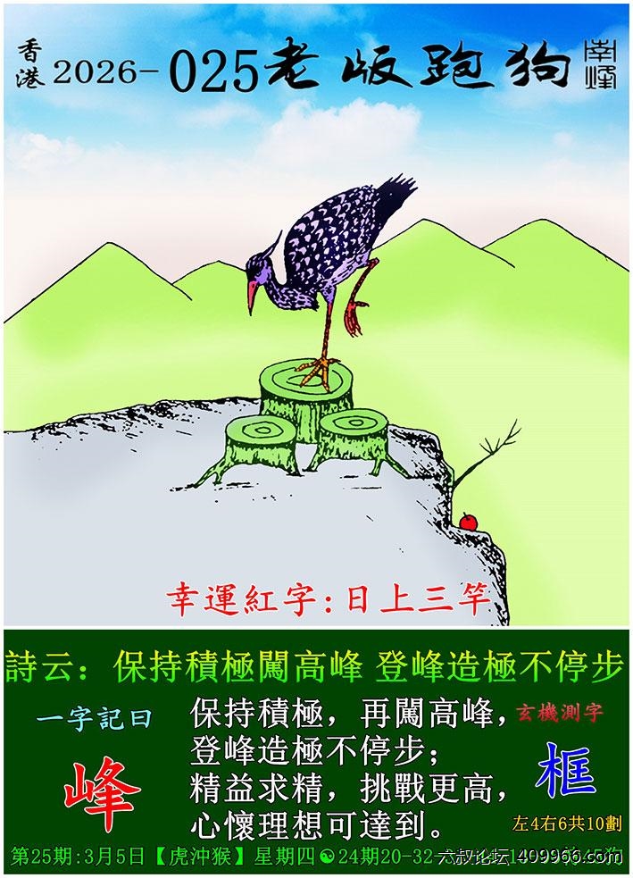 025期老版跑狗一字記之曰:【峰】 詩雲:保持積極闖高峰,登峰造極不停步。